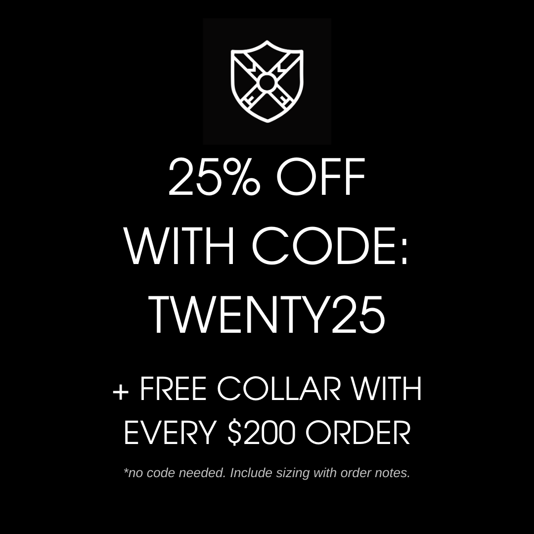 Get 25% off your entire cart this weekend only! Plus score a free collar with any $200 order. Discounts end Monday 11:59pm.