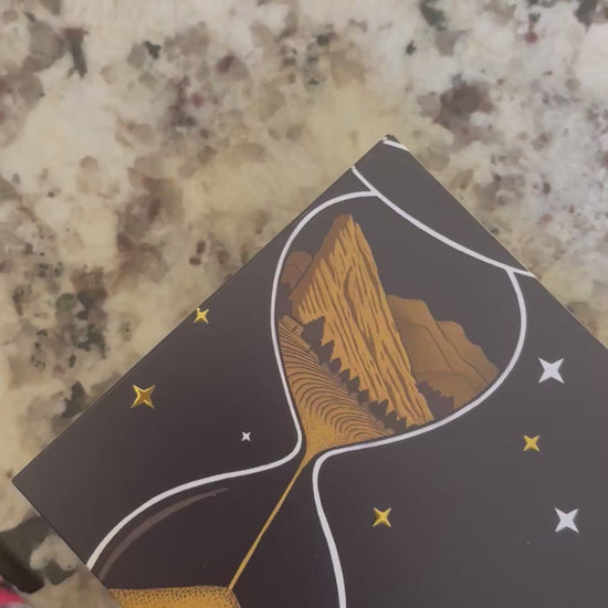 They are 3”x8”, printed on premium matte paper, double sided, with gold details and some fun surprises….(be sure to scan the QR code). Sold as a set of two. Each set will come in an envelope.
